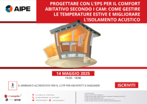 Il ciclo di tre incontri dell’ EPS Academy di AIPE dedicati all’approfondimento e al confronto sul tema                              “L’EPS fra CAM Edilizia e la Direttiva Europea IV – Case Green” torna con un 2° CORSO in maggio per approfondire l’argomento:  “PROGETTARE CON L’EPS PER IL COMFORT ABITATIVO SECONDO I CAM: COME GESTIRE LE TEMPERATURE ESTIVE E MIGLIORARE L’ISOLAMENTO ACUSTICO”.